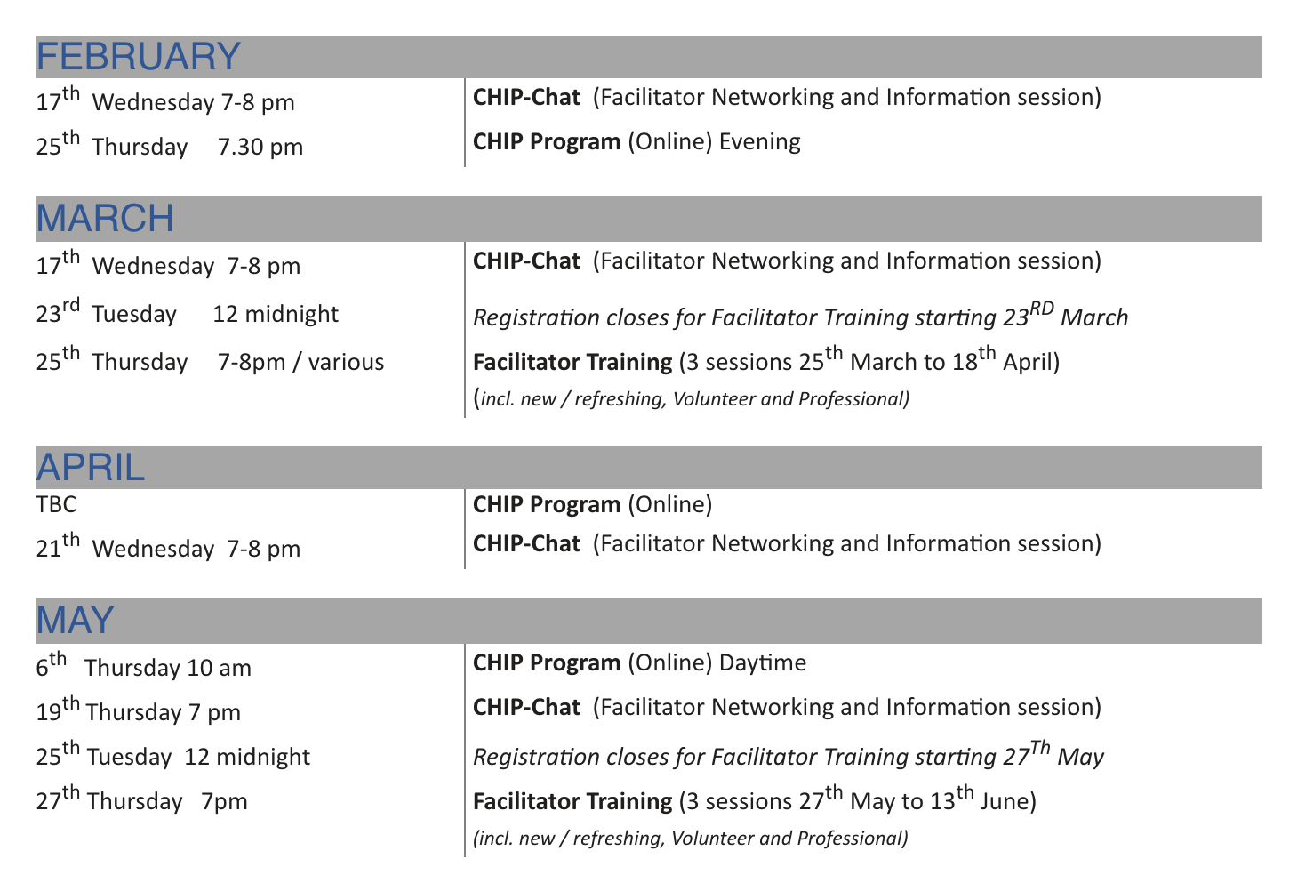 Those who are interested in running CHIP Programs can join the online Facilitator Training programs to become volunteer or professional facilitators (25th March and 27th May).