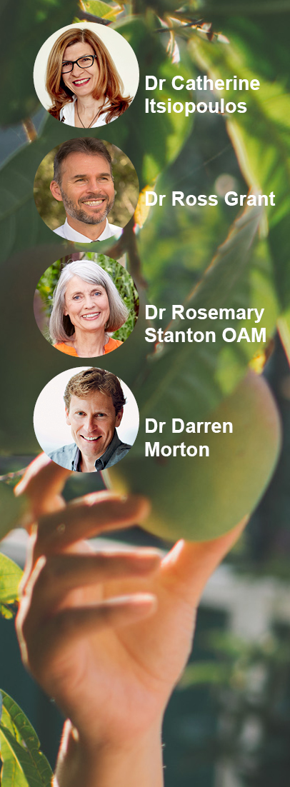 The evidence favouring a plant-dominant diet, such as the traditional Mediterranean diet with its emphasis on vegetables, legumes, fruits, grains, nuts and olive oil is strong. Yet popular authors and online bloggers loudly dispute the health benefits identified by Ancel Keys and others. Dr Stanton, Australia’s best known media dietitian, will explore who is right and where we should look for evidence.